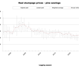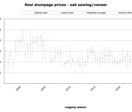 Prices for stumpage sold by Two Trees Forestry as of December, 2025