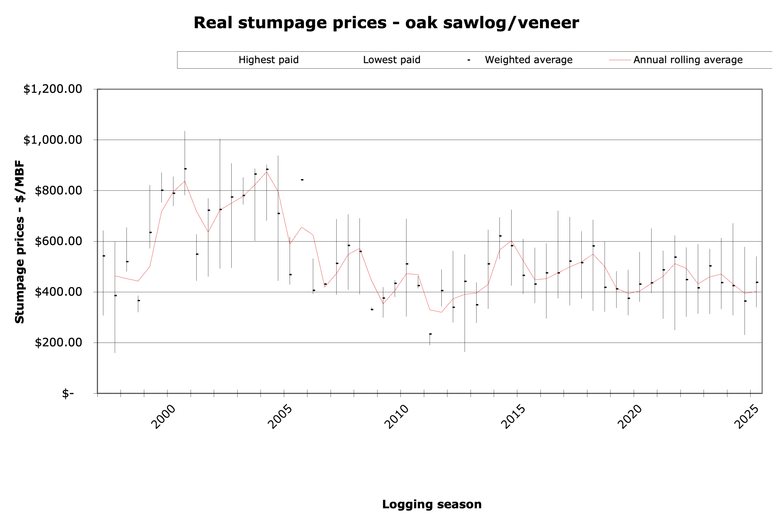 Prices for stumpage sold by Two Trees Forestry as of December, 2025